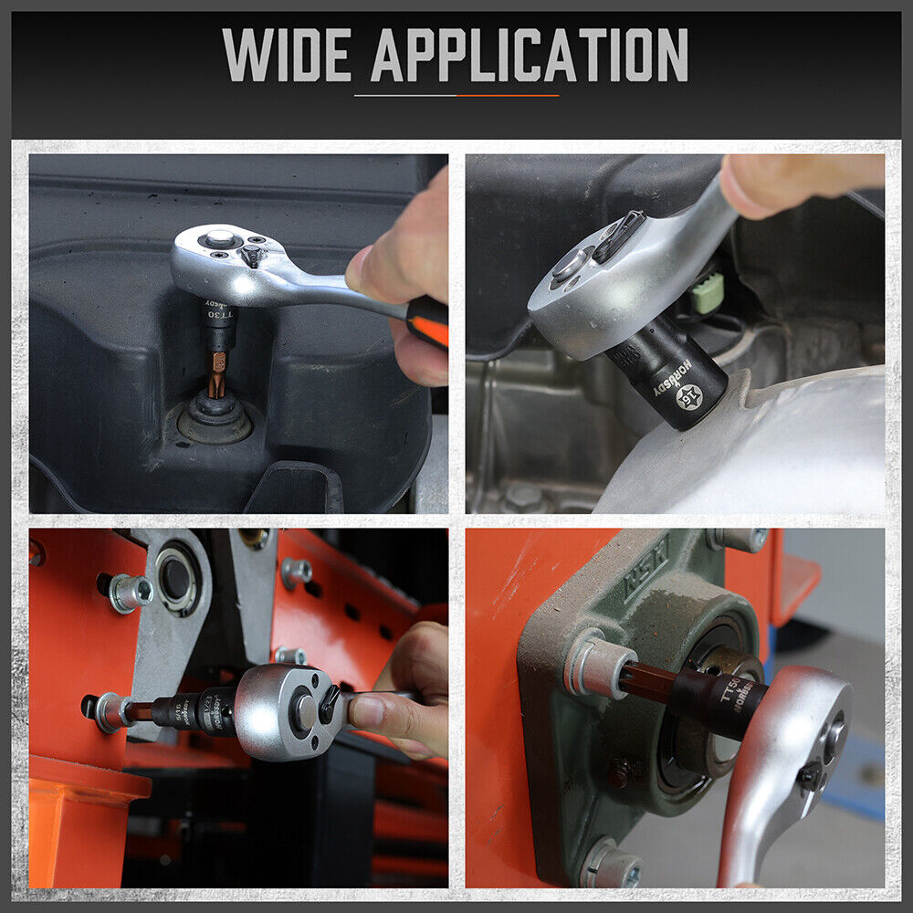 VERSATILE COMPATIBILITY - Perfect for use with manual torque tools, our Torx/Star bit set includes all necessary sizes for bicycles, cars, appliances, lawn equipment, machinery, and any other tasks.