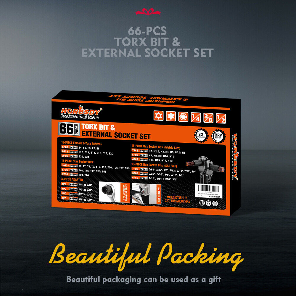 HORUSDY 66Pcs Torx Bit Socket Female External Socket Set Impact Adapter Socket