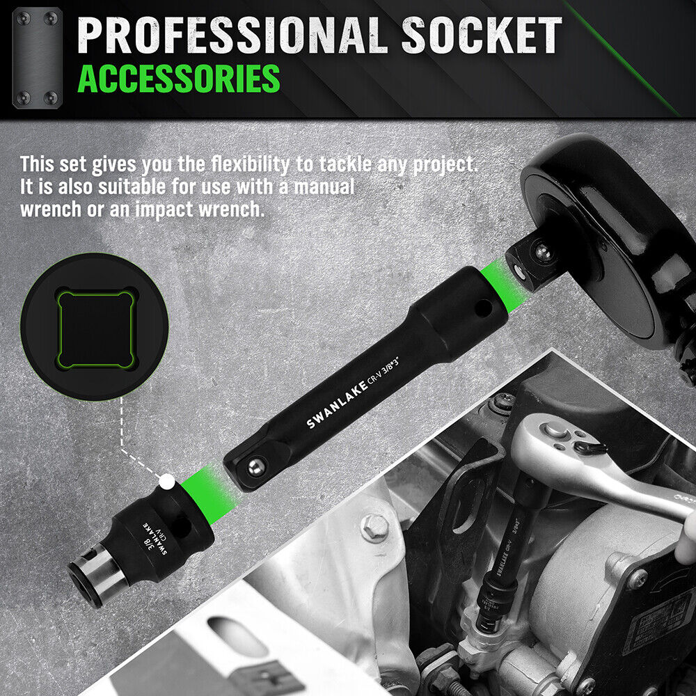 SWANLAKE 18Pcs Drive Tool Accessory Set Extension Bars Impact Universal Joint