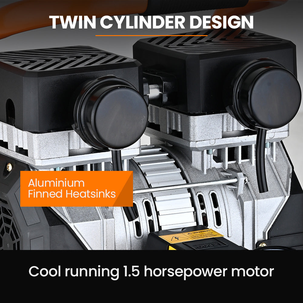 This Oil-Free Air Compressor is powered by a twin-cylinder 1.1kw motor - which is equivalent to a total output of up to 40% more than comparable models on the market!