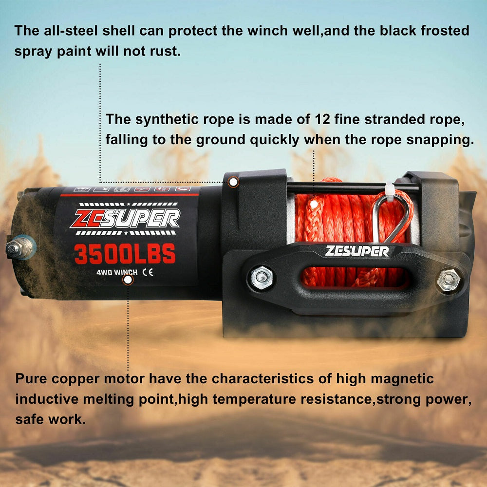 ZESUPER 3500LB Electric Winch 12V Wireless Portable ATV UTV Boat Trailer 4WD